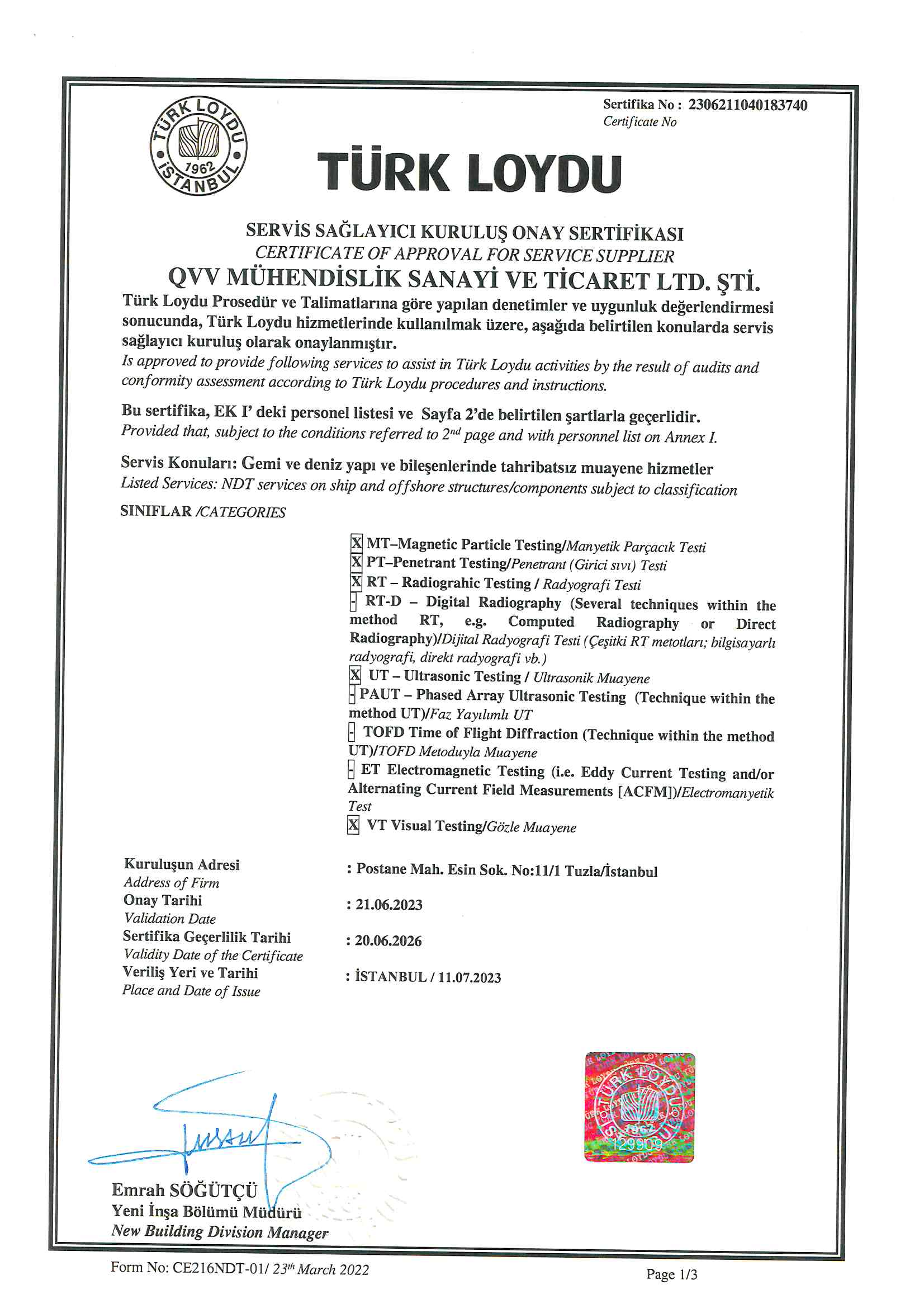 QVV MÜHENDİSLİK SAN. VE TİC. LTD. ŞTİ.conformément aux politiques que nous avons déterminées dans le cadre des systèmes de gestion nous nous engageons à